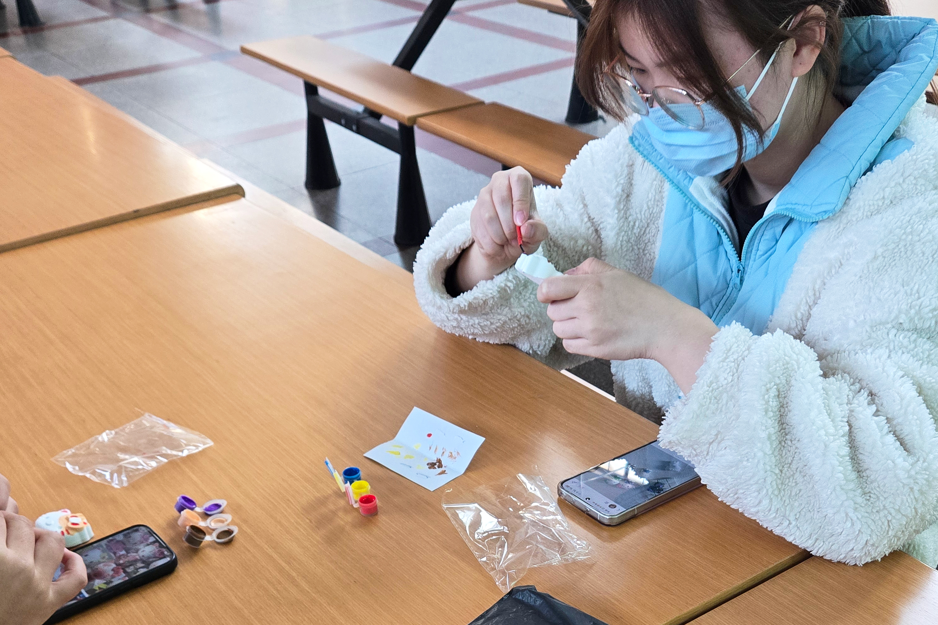 活动当日,两个校区的活动现场化身充满温情的“诗歌温暖站”。同学们或围坐成圈,畅聊创作思路、碰撞灵感火花;或手持画笔,在石膏娃娃上勾勒斑斓色彩,将暖心创意融入指尖手作;或俯身案前,在精美明信片上写下短诗寄语。“你的书包里,装着山风与期待”,一句句饱含深情的诗句,以真挚的情感与灵动的笔触打动了在场所有人。2025 级中国语言文学类专业(4)班的梁程程坦言:“用自己擅长的文字为留守儿童送去温暖,不仅提升了创作能力,更真切感受到公益的重量。” 她还特意在明信片中附上《小王子》的阅读推荐,希望山区小朋友能在书籍中收获陪伴与成长。
