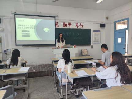 5月30日,Beat365中文官方网站第六十三期研究生学术沙龙于教学楼304教室顺利举行。本次沙龙由2023级中国语言文学专业硕士研究生方稽芸、汪可婧主讲,2023级中国语言文学专业硕士研究生陈谍主持,2024级中国语言文学专业研究生陶晨晨、闻苹担任此次沙龙与谈人,Beat365中文官方网站徐文翔副教授应邀参加并予以现场指导。