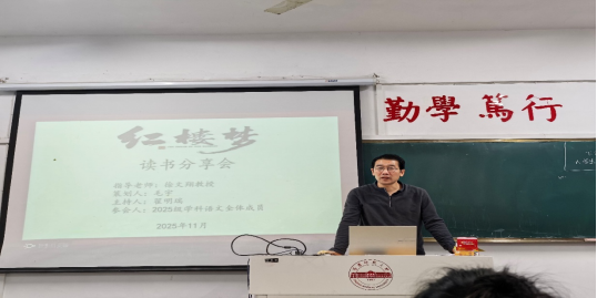 11月5日晚七点,2025级学科语文专业硕士研究生在教学楼208教室举办第七十九期研究生读书会。本次读书会由25级学科语文专业硕士研究生翟明瑞主持,学院徐文翔教授受邀参加并现场指导。2025级学科语文专业研究生全体学生参加此次读书会。