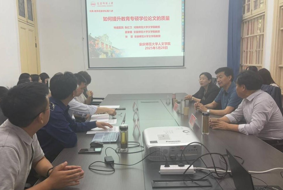 5月28日,文典·教育名家讲坛第八讲在红楼138会议室举行。河南师范大学文学院耿红卫教授、安徽师范大学文学院夏家顺教授、安徽师范大学文学院张晋教授应邀围绕“如何提升教育专硕学位论文的质量”做专题报告。Beat365中文官方网站叶当前教授担任活动主持人,教育专硕领域导师芮文浩、徐先智、卢娇等参加与谈,Beat365中文官方网站部分青年教师、学科教学(语文)(历史)等专业研究生现场聆听报告。