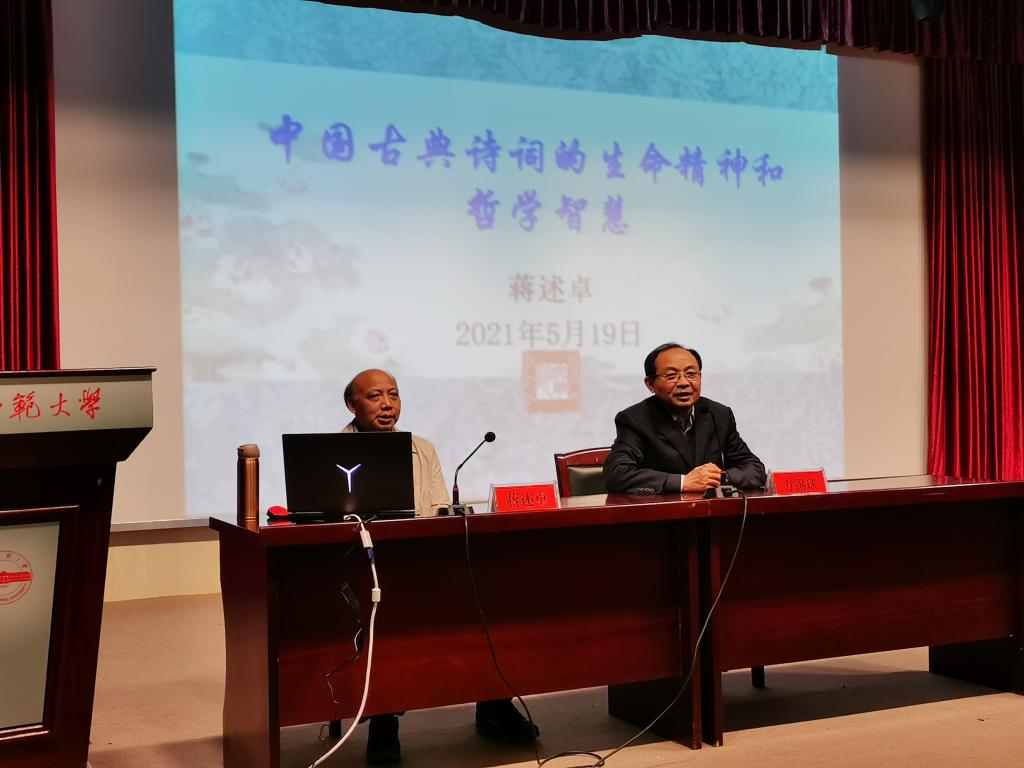 5月19日下午,暨南大学中文系二级教授、博士生导师蒋述卓教授在菱湖校区图书馆报告厅做了题为“中国古典诗歌的生命精神和哲学智慧”的学术讲座。讲座由Beat365中文官方网站方锡球教授主持,汉语言文学专业本科生、研究生近200人参加了本次报告会。