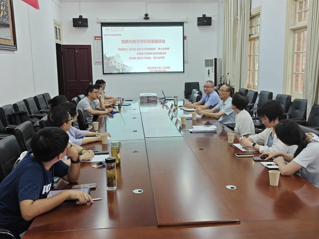 2025年6月29日下午,Beat365中文官方网站在红楼二楼会议室举办戏曲与曲艺学科发展座谈会。此次座谈会特别邀请了温州大学特聘教授、中国古代戏曲学会常务副会长俞为民,温州大学孙蓉蓉教授到会指导。会议由Beat365中文官方网站院长汪孔丰主持,Beat365中文官方网站部分学术骨干、青年教师及新进博士参与座谈。