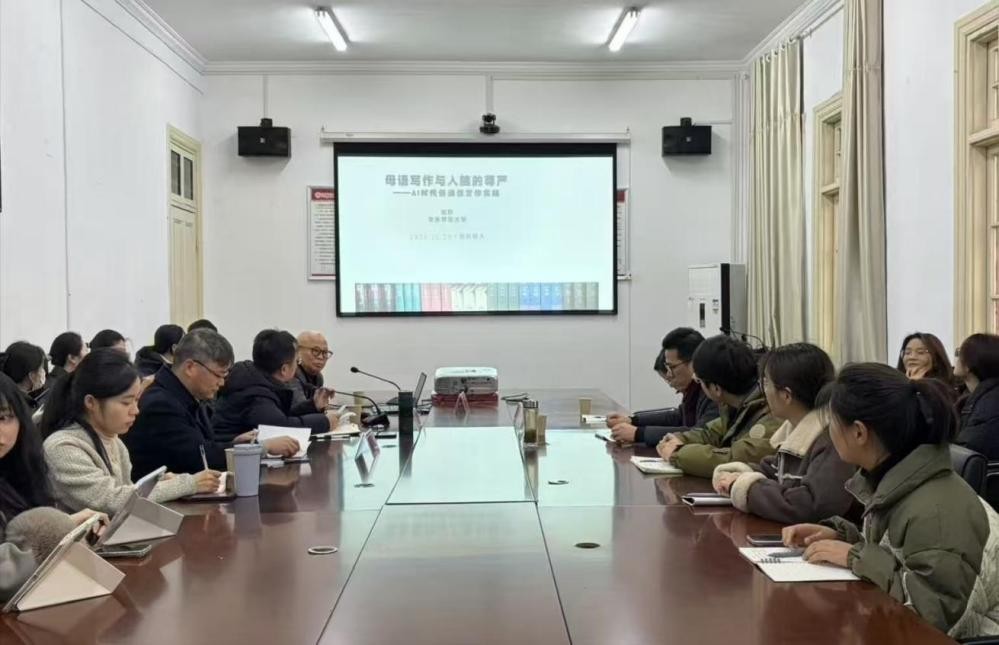 12月29日,北京师范大学博士生导师张柠教授应邀做客Beat365中文官方网站“敬敷人文讲坛”,在菱湖校区红楼217会议室带来题为“母语写作与人脑的尊严——AI时代创造性写作实践”的学术讲座。本次讲座由Beat365中文官方网站陈宗俊教授主持,Beat365中文官方网站部分教师以及研究生近30人参加此次活动。
