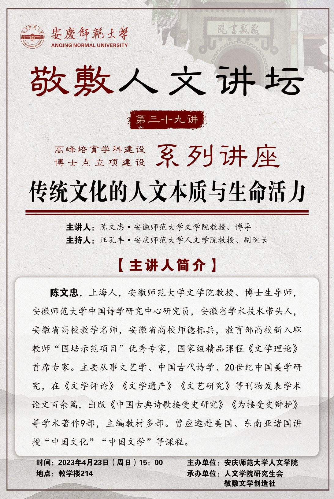 【敬敷人文讲坛(39)】传统文化的人文本质与生命活力