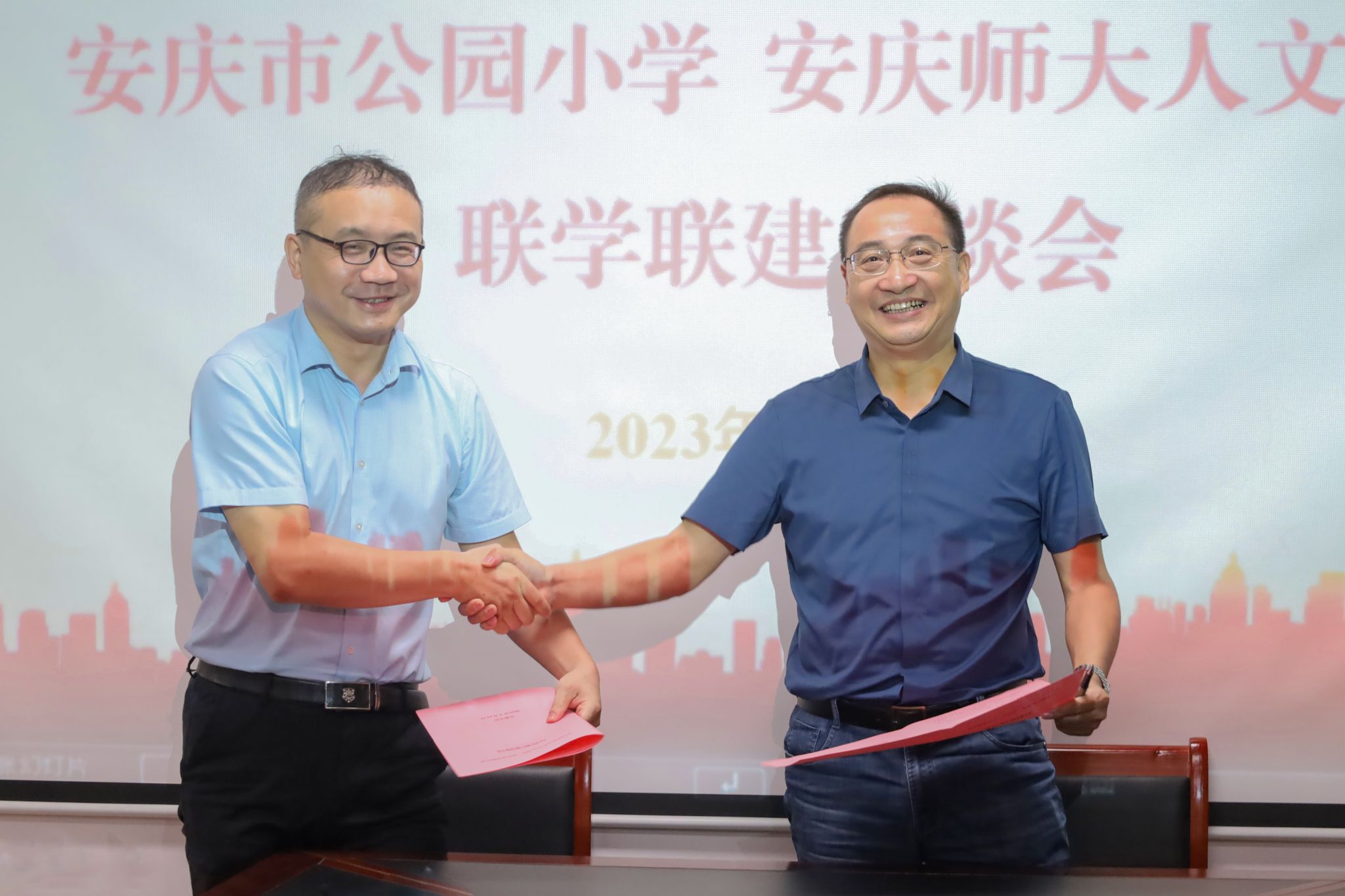 9月13日,Beat365中文官方网站与安庆市公园小学举办联学联建座谈会,就基层党建、实践教学、教师研修、课外延时服务、人才培养等方面达成战略合作。双方单位党政班子成员出席,双方教师代表、人文学院研究生党支部党员参加了座谈会。