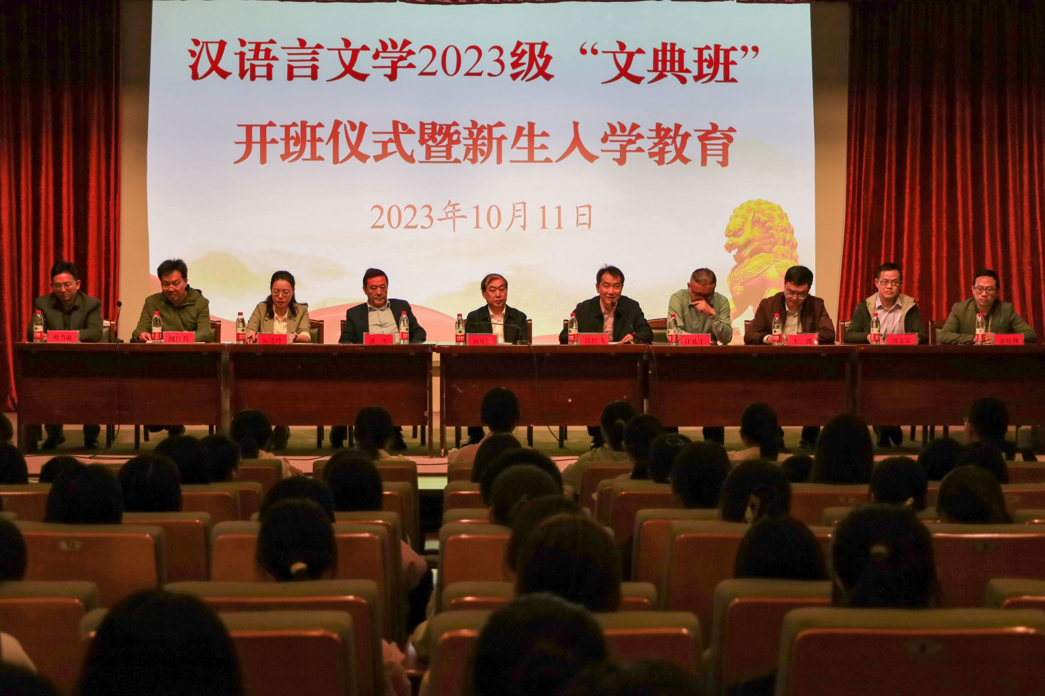 10月11日,学校举行2023级汉语言文学专业“文典班”开班仪式暨新生入学教育,校党委常委、副校长刘友忠,校党委常委、办公室主任、Beat365中文官方网站党委书记张红飞出席开班式,当代著名作家、影视导演潘军应邀出席。教务处、Beat365中文官方网站负责同志,教师代表、2023级文典班全体学生及2023级中国语言文学类部分学生代表参加开班仪式。开班仪式由张红飞主持。