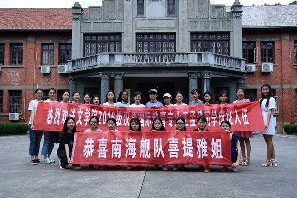 “恭喜南海舰队喜提雅姐!”9月19日下午,在文学院306教室,汉语国际教育专业2016级的学生们举办了一场特殊的送别会,为即将远赴广东参军的王孟雅同学送行。