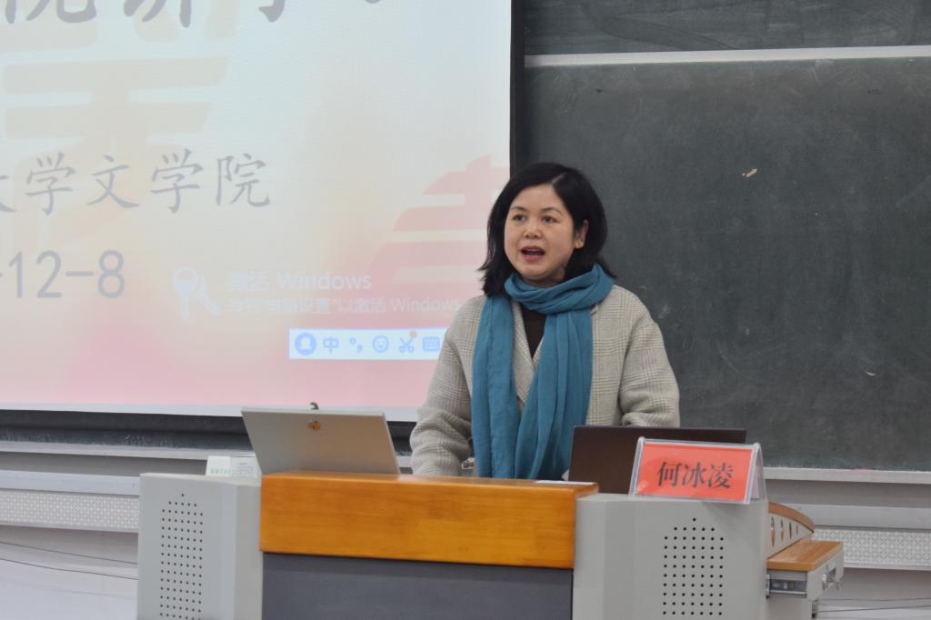 12月8日上午,中国作协会员、中国文艺评论家协会会员、安徽省第二届签约作家、安徽省作协诗歌专委会委员何冰凌老师于教学楼315教室为文学院做了一场题为“朝向未知事物的光”的讲座。讲座由文学院党委书记方锡球教授主持,该院研究生与本科生共一百五十余人参加此次讲座。