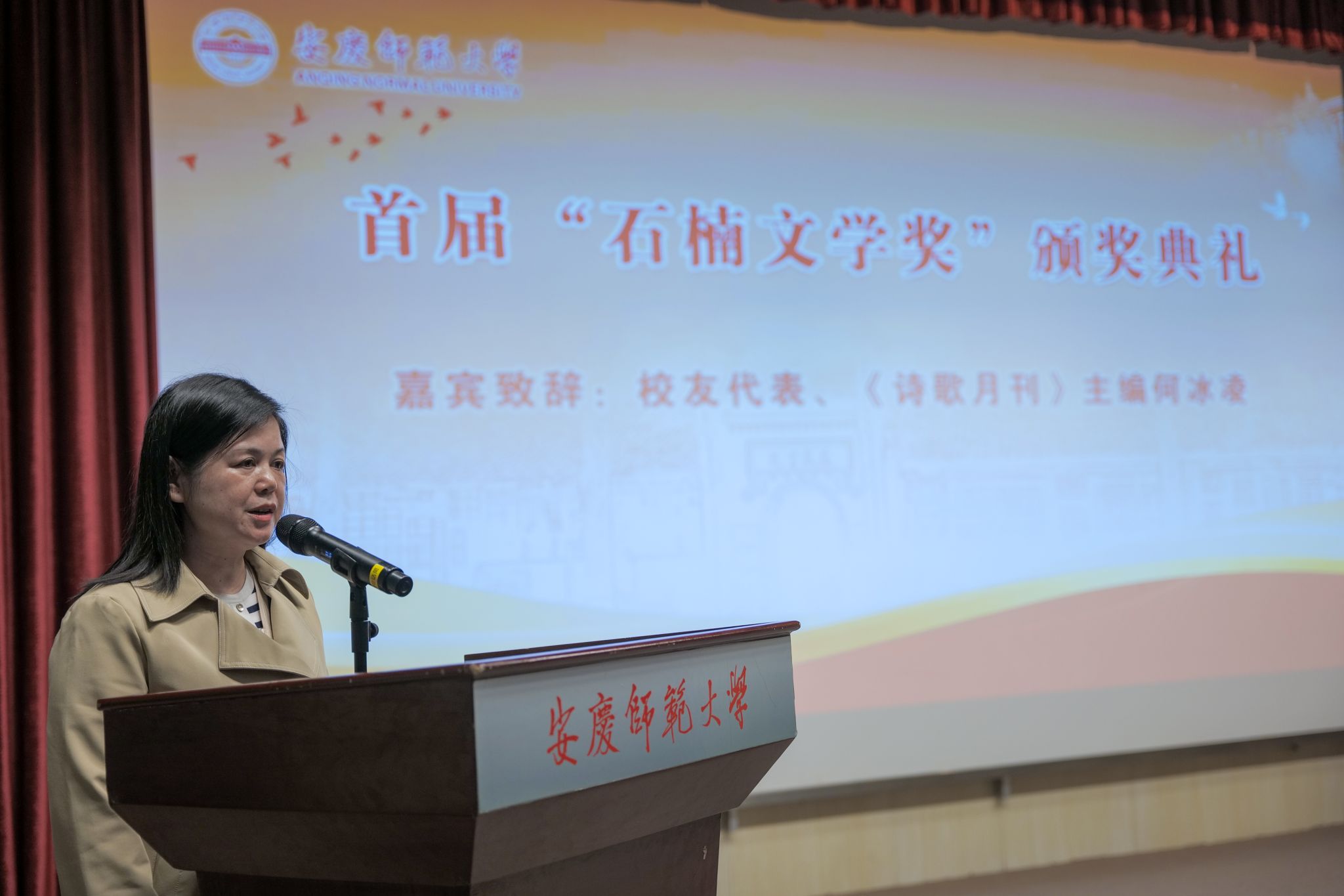 11月16日,学校在菱湖校区图书馆报告厅举行首届“石楠文学奖”颁奖典礼。党委常委、副校长刘友忠出席活动并致辞。20位青年文学新星获评首届“石楠文学奖”并接受颁奖。