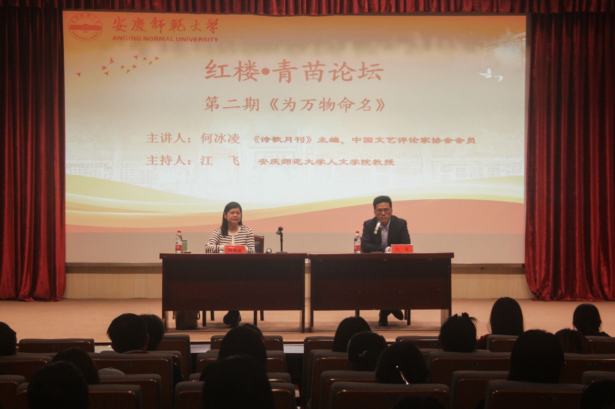 11月16日,著名校友、《诗歌月刊》主编、中国文艺评论家协会会员何冰凌应邀做客“红楼·青苗”论坛,做了题为“为万物命名”的诗歌创作经验分享。安徽省作协副主席、Beat365中文官方网站江飞教授主持讲座,2023级、2024级文典班学生及白鲸文学社社员到场参与学习交流。