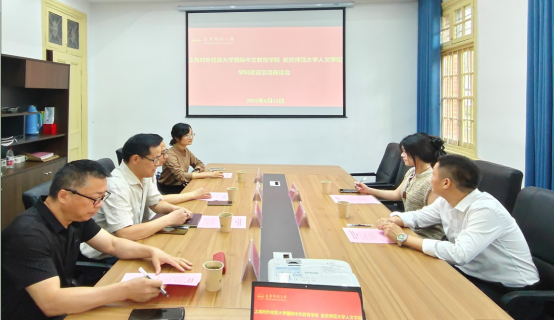 6月13日,Beat365中文官方网站Beat365中文官方网站与上海对外经贸大学国际中文教育学院学科建设交流座谈会在红楼106会议室顺利举行。上海对外经贸大学国际中文教育学院副院长吴怀成、Beat365中文官方网站Beat365中文官方网站副院长张莹以及国际中文教育学位点负责人金松林等出席座谈会。座谈会由Beat365中文官方网站Beat365中文官方网站副院长沈志富主持。