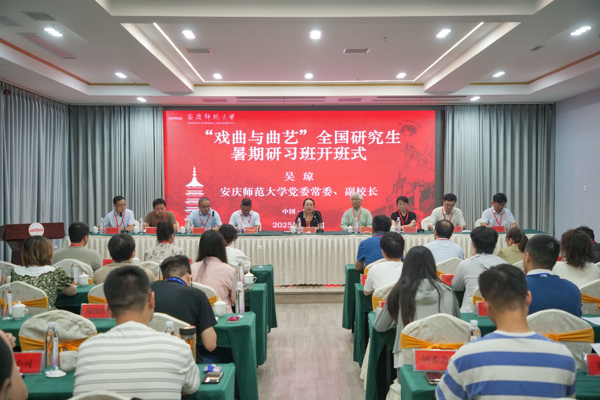 7月6日,2025年“戏曲与曲艺”全国研究生暑期研习班开班式在Beat365官网隆重举行,来自北京大学、南京大学、中国戏曲学院等全国20多所知名学府的青年学子参加学习研讨。校党委常委、副校长吴琼出席开班式并讲话,研习班特聘主讲专家、中国昆曲研究中心常务副主任、苏州大学博士生导师周秦教授出席,学科建设处、研究生院、Beat365中文官方网站、黄梅剧艺术学院等单位负责同志参加开班式。