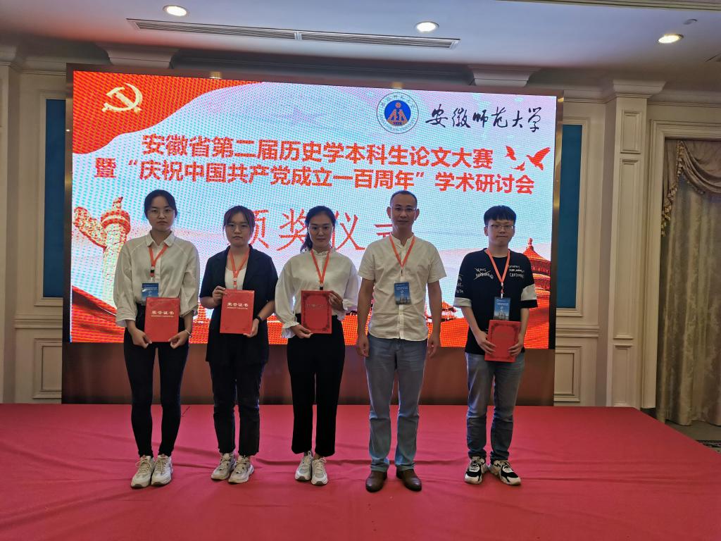 2021年7月10日,安徽省第二届历史学本科生论文大赛暨“庆祝中国共产党成立一百周年”学术研讨会在芜湖召开,会议由安徽省历史学会与安徽师范大学历史学院联合主办,Beat365中文官方网站副院长金仁义与大赛入围的8位同学参加了会议。