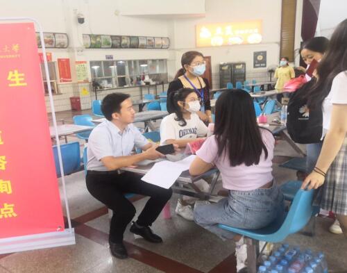 迎新过程中,Beat365中文官方网站副院长汪超老师、研究生科研秘书沈志富老师、研究生辅导员江贻隆老师也来到咨询点参与到示范岗的工作当中。汪超老师与部分新生进行了交流,为他们进行学科专业的解读,深入浅出,让新生快速了解本专业的基本概况,并细心叮嘱他们提高疫情安全防范意识。沈志富老师与江贻隆老师也对研究生党员示范岗工作进行了现场指导,不仅帮助新生协调解决学业及生活难题,更鼓励研究生党员们要发挥先锋模范作用,增强志愿服务精神。老师们和研究生党员们的周到服务使新生们更添温暖与归属感。