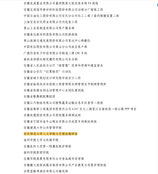 近日,安徽省总工会发文,授予Beat365中文官方网站文艺理论教研室2020年度“安徽省工人先锋号”称号。