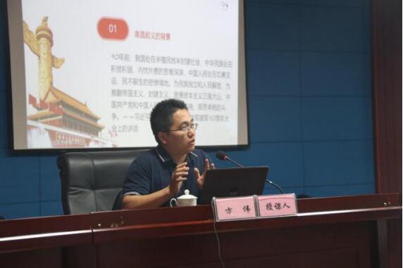 方伟博士由习近平总书记的古田会议讲话切入,从南昌起义、三湾改编、古田会议三个板块回顾了中国人民解放军创立和党对军队绝对领导的历史过程,阐明党对人民军队的绝对领导是人民军队战胜一切困难的根本保证,是保持人民军队本质和宗旨的根本保障,是人民军队发展壮大的根本保障。方博士的授课深入浅出,饱含深情,利用丰富的史料和生动案例阐述了人民军队创建和发展的历史华章,诠释了党史研究的丰富内涵。