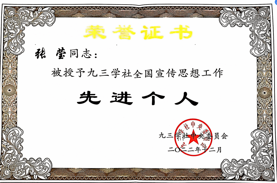 近日,九三学社中央发文,对近年来在组织工作中涌现出的先进集体和先进个人进行表彰。九三学社Beat365中文官方网站支社主委、Beat365中文官方网站张莹副教授荣获九三学社“全国宣传思想工作先进个人”,展现了新时代统一战线巾帼担当风采。