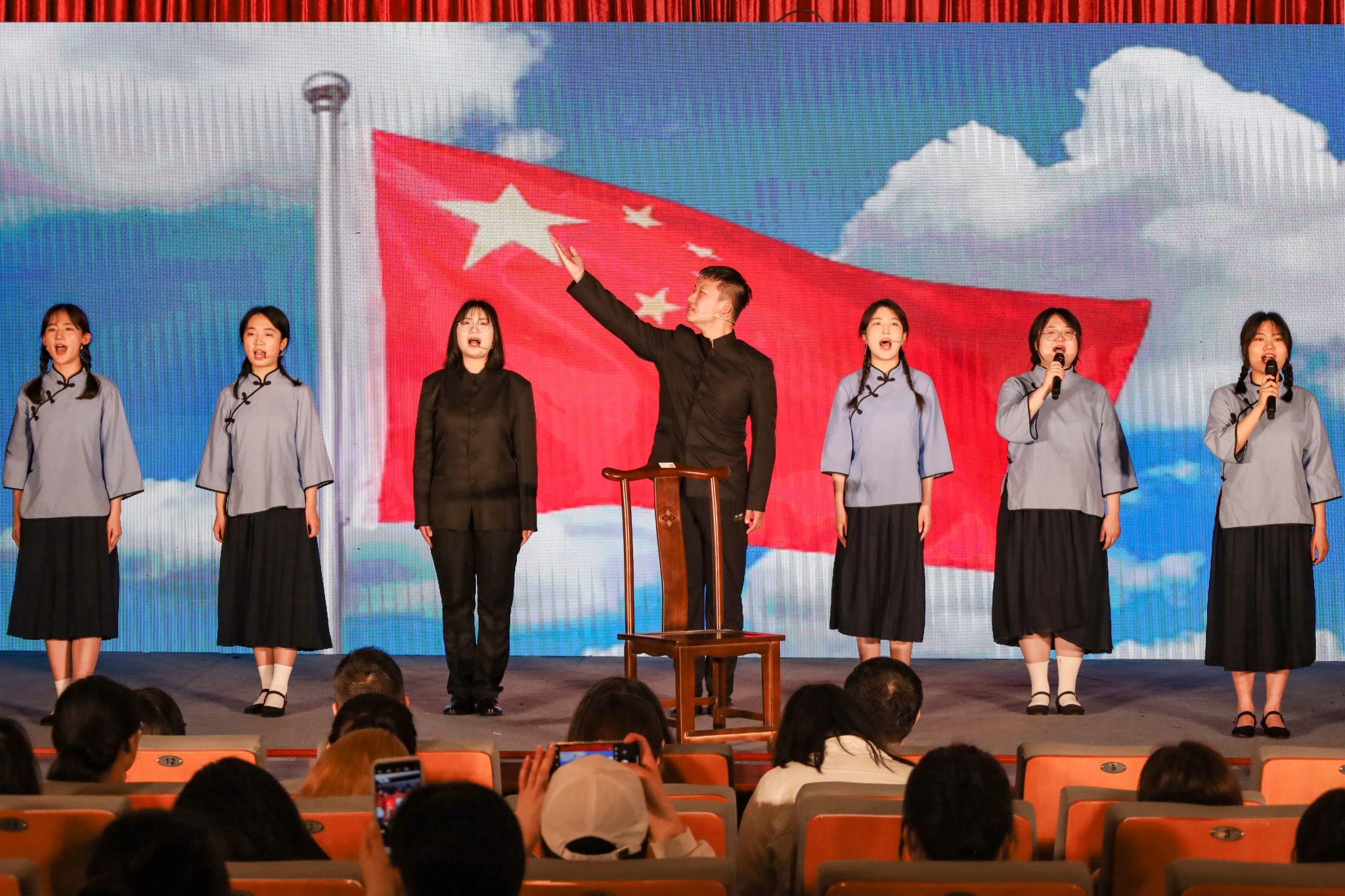 “本次艺术党课中有不少演职人员是党员或入党积极分子,通过这样自导自演的方式,大家都备受鼓舞,也更加坚定了青年大学生们在新时代新征程的青春赛道上努力奔跑,自强奋斗的信心和决心!”活动负责人唐宫羽表示,本次艺术党课的开展,旨在深入开展学习贯彻习近平新时代中国特色社会主义思想主题教育,全面贯彻党的教育方针,落实立德树人的根本任务。此次专题艺术党课将理想信念和家国情怀融入表演和作品创作当中,希望全体同学在艺术熏陶中厚植爱国情怀,让党的创新理论入脑入心,真正做到党课学习“知行合一”。(撰稿:学生记者 陈欣雨 石奕舟 摄影:学生记者 张素清 王安琦 审核:王波)