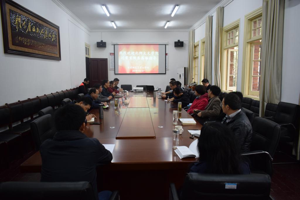 10月27日下午,在红楼二楼会议室召开中国语言文学一级学科博士点建设座谈交流会。会议由文学院党委书记方锡球教授主持,北京师范大学文学院院长过常宝教授受邀作为主讲嘉宾,文学院行政班子成员、二级学科点负责人、教研室主任及十几名教授出席本次会议。