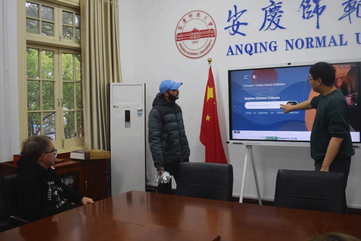 “握笔时主要是用右手的食指发力,笔要保持直立的状态。”……来自2022级汉语国际教育的马跃源同学向外籍师生及同学们展示书法要点。随后,外籍师生及汉语国际教育学生在黄梅剧艺术学院学生的带领下学习黄梅戏唱腔要点。外籍师生与汉语国际教育学生共同参与成语接龙游戏。在“中文+线上文化展”平台上,外籍师生共同观看视频,进一步了解中国文化。