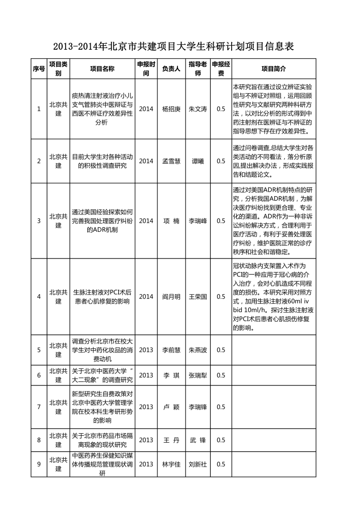 2013-2014年北京市共建项目大学生科研计划项目信息表(MG冰球突破官网网站)