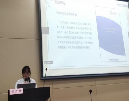 胡云梦同学从案例分析法入手向我们分享了不同中医药健康养老模式下具有代表性的养老实践案例,从近年政策及老龄化数据向我们阐述当前中医药健康养老发展的紧迫性与必要性。通过详细的案例分析介绍了我国目前主要的四种中医药健康养老模式。最后在论文撰写的经验上,胡云梦同学提示我们在阐述文章时可以适当加入图表,通过数据可视化来增强文章的可读性;告诉我们“最好的创新就是率先模仿”,可以通过文献的阅读积累及课程学习拓展自己的研究方向,通过公共数据库来获得相关的研究数据,为我们撰写小论文提供了多种思路。