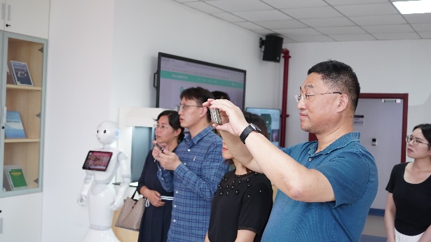 会议最后,全体人员参观了MG冰球突破官网网站医疗健康人工智能实验室。人工智能实验室以达成人工智能类项目实验闭环为设计理念,可提供从数据采集、数据标注、模型训练、模型部署到产品开发的全生命周期人工智能实训实验。拥有支持人工智能课程教学、实训实践及竞赛的综合实训平台,并拥有基于Jetson边缘计算的中药饮片辨识实训系统、智能机器人实训系统、中药饮片调配预警实训系统和中医四诊仪等具有典型行业特色的AI+中医智能系统,并且这些智能系统都是由我校大数据管理和应用专业学生参与下开发完成的。参访人员高度赞扬了实验室的先进设施与创新实践教学模式,认为这不仅极大地促进了学生理论知识与实践技能的融合,还为中医与现代科技的结合开拓了新视野,是医学教育现代化的典范。他们对于学生能参与到如此高水平的研发工作中感到非常鼓舞,认为这充分体现了学校在培养未来医疗健康领域创新型人才方面的远见卓识和坚实成效。