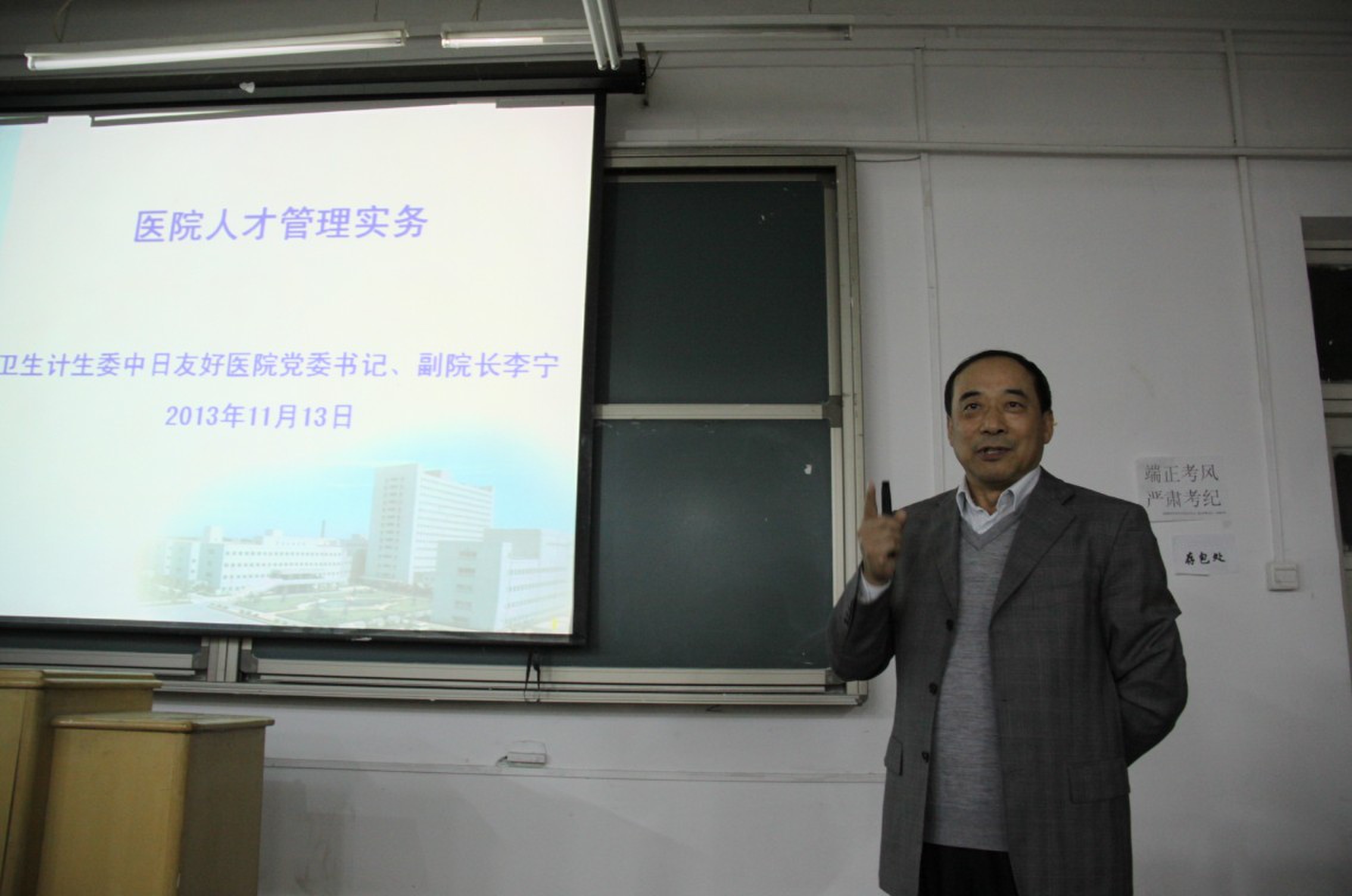 2013年11月13日晚上6点,MG冰球突破官网网站在46教成功举办了题为“医院人才管理实务”的专题讲座。此讲座为2013学术节MG冰球突破官网网站专场第三场,邀请嘉宾为中日友好医院党委书记、副院长,MG冰球突破官网网站兼职硕士研究生导师李宁教授。MG冰球突破官网网站广大师生积极参加了此次讲座。