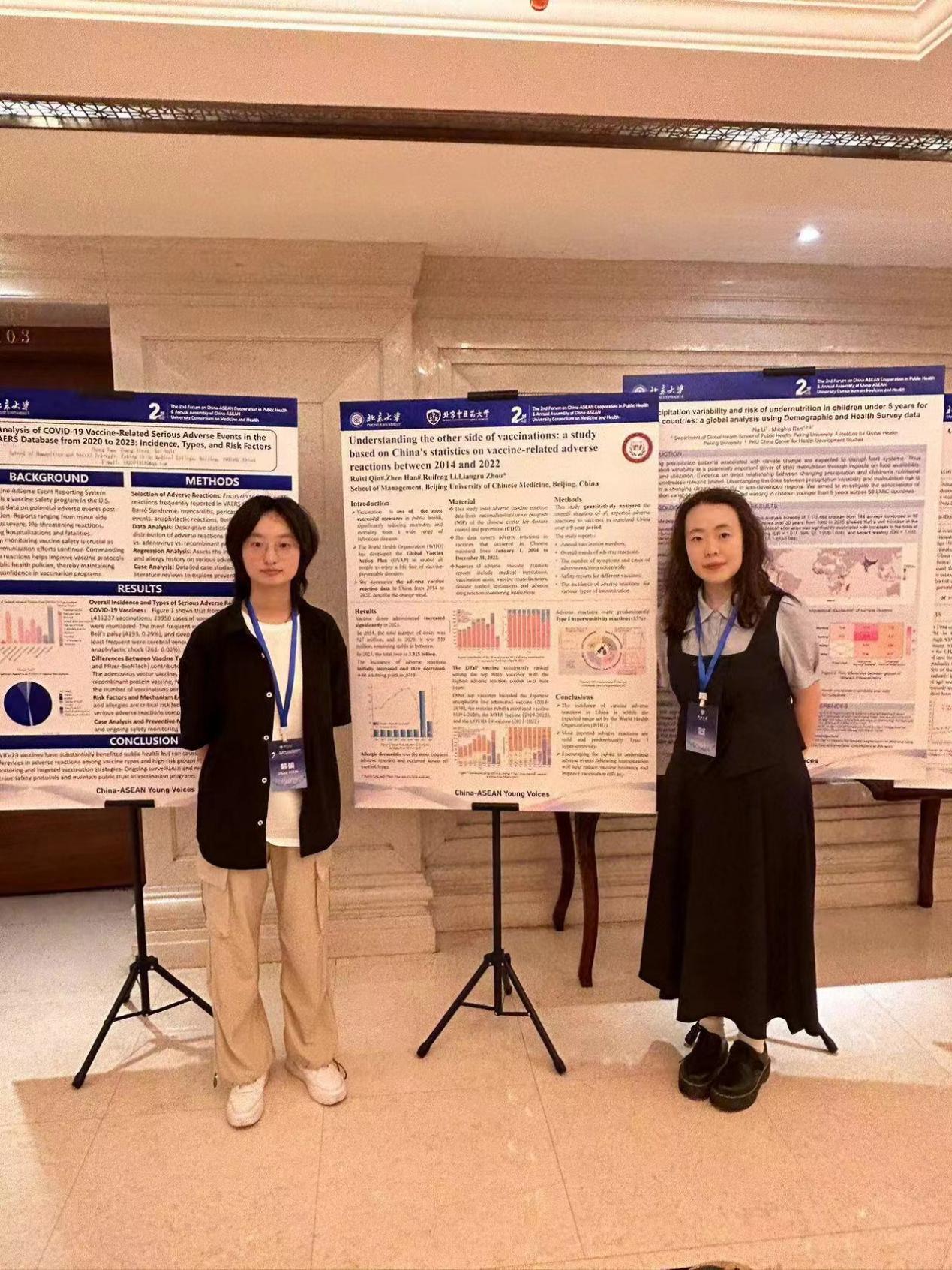 图5秦睿玺(左)与韩镇(右边)在“疫苗相关不良反应”壁报前合影