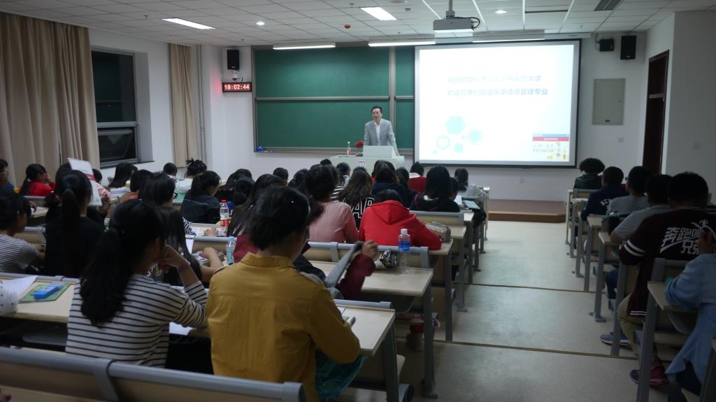 在随后的两周里,各系主任为各专业新生做了详细的专业介绍,耐心地为学生解答了如何学好专业课程等具体问题。此外,军事科学院医学情报研究所王松俊教授以及我院朱燕波老师、侯胜田老师分别从自身的学术领域出发,为同学们展示了医学信息管理、数字时代的管理以及健康管理等专业知识。开拓了大家的视野,提升了大家的专业兴趣,给同学们留下了十分深刻的印象。