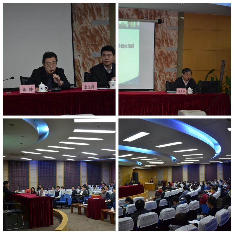 11月20日上午8:30,培训班开班仪式在小汤山疗养院健康管理中心三楼报告厅举行。北京市中医管理局局长屠志涛、医政处副处长王欣、赵玉海、MG冰球突破官网网站党委书记陈峥出席仪式。仪式上,陈峥书记首先发言,他对中医局的信任表示感谢,同时强调了本次培训的重要性,并对不顾风雪前来培训的学员们表示热烈欢迎。开班式后,屠志涛局长为大家做了题为“三观互动,三业联动,推进行业精细化治理”的报告,跟学员们共同探讨中医发展问题,并对本次培训活动寄予了深切的期望。
