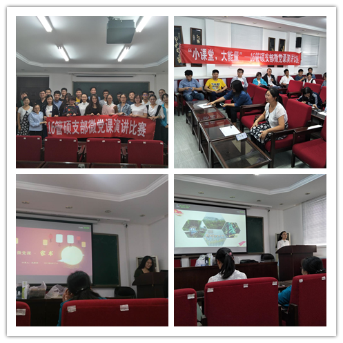 2017年9月27日下午,由MG冰球突破官网网站党委举办、16管硕支部承办的“小课堂,大能量”微党课演讲比赛在MG冰球突破官网网站301会议室顺利开展。MG冰球突破官网网站党委委员郭冬梅老师、学生办公室张路老师、16管硕支部书记王慧老师担任评委。学院党委副书记赵静参加并颁奖。