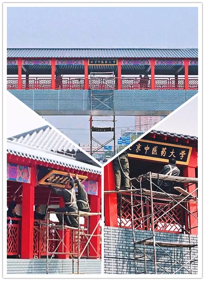 2018年4月17日上午12时,标有“MG冰球突破官网网站”字样的牌匾正式悬挂于良乡校区过街天桥之上。整个牌匾长2.39米,宽0.55米,蓝底金字,与汉唐风格的天桥设计相得益彰,超级高端!超级气派!良乡校区天桥独具特色,牌匾的悬挂更为其增添了几分大气与恢宏,已然成为北中医良乡校区一张亮丽的名片。让我们一起先睹为快吧!