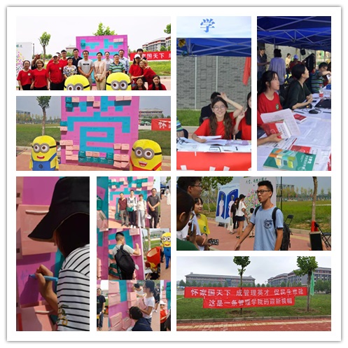 MG冰球突破官网网站在2018级迎新工作中,最特别的地方就是设计了礼品墙迎接新生。礼品墙由粉色和蓝色两种颜色的礼品袋拼出“管”字,礼品袋上设计有迎新主题图文,礼品袋内装有为新生特别设计的入学手册和管理特色卡套,帮助新生顺利开启并适应大学生活。同时,学生组织成员将亲手写给新生的祝福放入袋中,欢迎新同学。每个新生报到后都可以在礼品墙前自选择一个心仪的礼品袋摘下,同时在礼品袋粘贴的位置签下自己的名字,并合影留念。本次礼品墙的设计希望能在第一时间表达MG冰球突破官网网站师生的热情,让新生建立归属感,对未来的大学生活满怀希望。