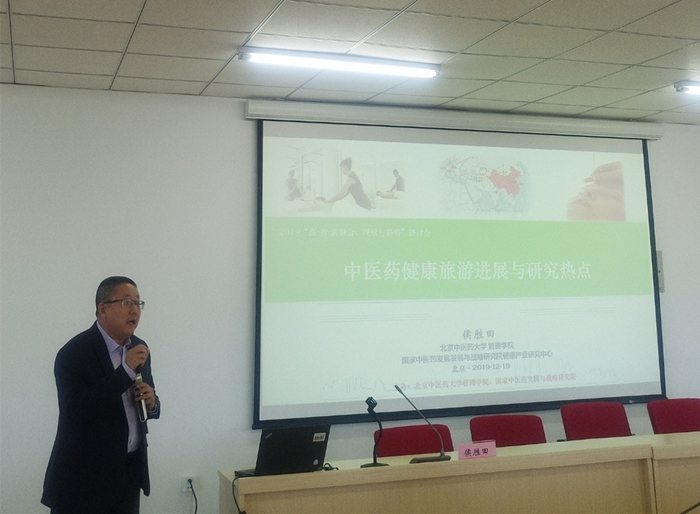 随后,侯胜田教授结合秦教授的研究思路,立足我国国情,对中医药健康旅游业的发展现状、产业进展与研究热点进行了讲解,并提出了“医养游居憩”的概念,鼓励同学们在该领域内进行深入研究与挖掘。