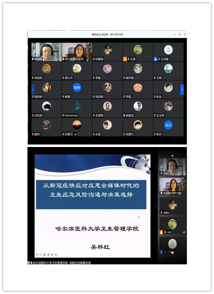 2020年7月22日下午,哈尔滨医科大学卫生MG冰球突破官网网站院长吴群红教授应MG冰球突破官网网站之邀,为师生做了以“从新冠疫情应对反思全媒体时代的卫生应急风险沟通与决策选择”为题的线上讲座。讲座由MG冰球突破官网网站李瑞锋院长主持, 150余师生在线参加交流。