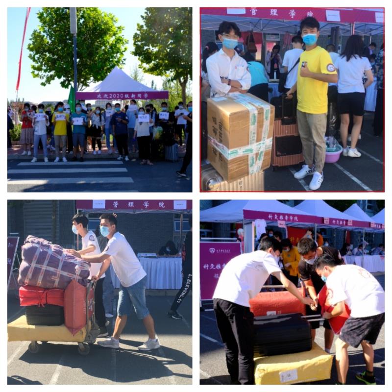 按照疫情防控要求,家长们无法进入校园。为保证新生们顺利入校办理手续并入住宿舍,切实做到“让新生舒心,让家长放心”,学院组织18、19级的同学们为每名新生安排了“专属学长学姐”进行二对一精准接待。新生抵达学校的一瞬间,就会看到为自己守候的学长、学姐们,高举自己名牌翘首等待的身影。之后,学长学姐们会耐心周到地指导新同学办理报到手续,并帮助新同学将行李搬运到宿舍。