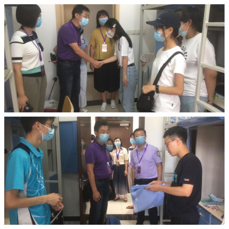 下午,新生们陆续完成了报到手续,返回宿舍安排自己的“新家”。MG冰球突破官网网站的领导和老师们,也前往全体MG冰球突破官网网站20级新生们的宿舍,就学生们的住宿环境、行李安置与床铺准备情况进行了关心和慰问,希望新生们能够快速适应大学生活,努力拼搏,不负青春,度过充实的四年大学生活。