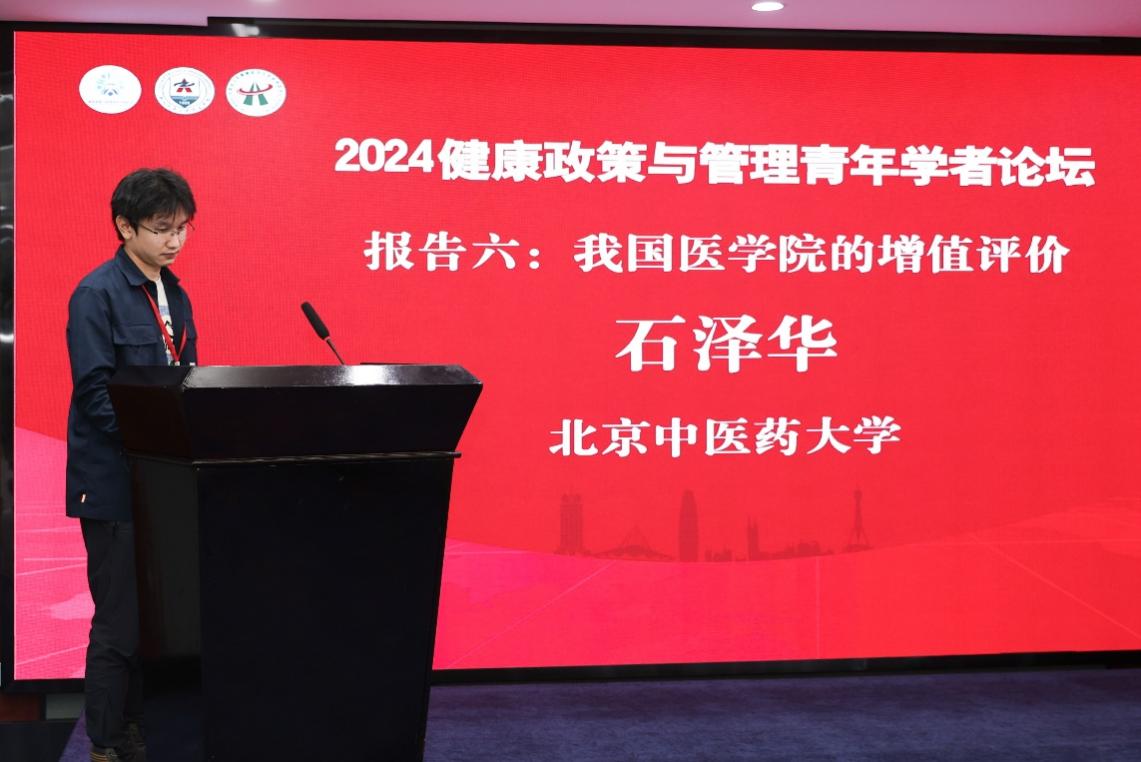 在论坛的新角色板块的主旨报告中,青年教师石泽华作题为《我国医学院校的增值评价》的报告,首先分析了医学院校质量对于医学生学业成绩的重要影响,其次展示了增值评价与传统结果评价的对于评价我国医学院校的差异,并指出未来可结合增值评价和结果评价从而构建综合评价指标体系避免教育资源分配的马太效应。