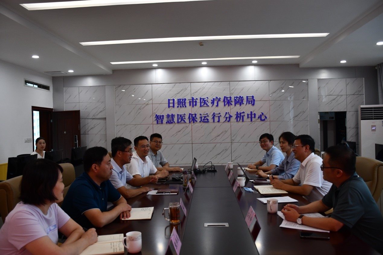 2022年7月29日下午,MG冰球突破官网网站院长李瑞锋教授、卫生财经与卫生政策教研室主任石学峰副教授以及孔国书博士一行赴山东省日照市医保局调研并开展科研基地合作洽谈。日照市副市长林彦芹、日照市医保局局长安丰堂、副局长宋震、医药服务管理科科长韩伟,泰康养老保险公司数据产品部总经理李佳、山东分公司健康保险市场部总经理张海参、日照区域中心总经理张伟武出席座谈会。