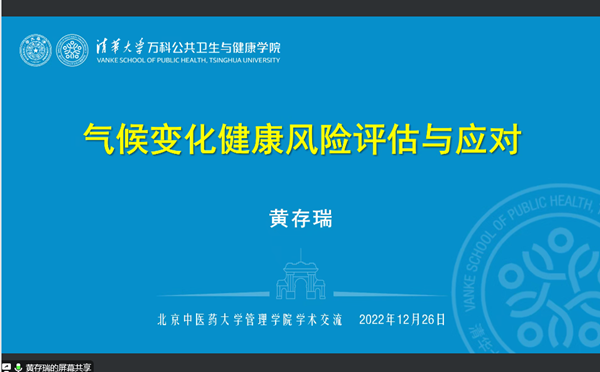 2022年12月25日下午14:00,MG冰球突破官网网站“博约论坛”第41讲通过线上腾讯会议的形式顺利开展。本次论坛邀请到清华大学万科公共卫生与健康学院黄存瑞教授作题为“气候变化健康风险评估与应对”的报告,MG冰球突破官网网站李瑞锋院长参加本次学术交流活动,MG冰球突破官网网站王慧副院长主持,MG冰球突破官网网站100余名师生线上参与。