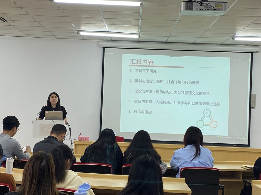 2023年3月29日下午,MG冰球突破官网网站“博约讲坛”系列学术交流活动第43讲通过线下+线上结合的形式成功举办。本次论坛邀请到中国人民大学公共MG冰球突破官网网站社会保障研究所副教授、硕士生导师梁海伦做报告。报告主题为《基因、环境与行为选择——基于公共管理与行为遗传学科交叉的视角》,本期学术交流活动由MG冰球突破官网网站副院长王慧主持,共计120余名师生积极参与并交流互动。