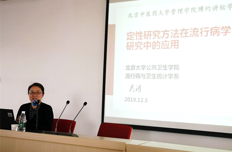 2019年12月5日下午,“博约讲坛”第四讲在MG冰球突破官网网站331环形会议室举行。应我院健康管理与心理教研室的邀请,北京大学公共卫生学院流行病与卫生统计学系副主任——吴涛教授做了“定性研究在流行病学研究中的应用”的报告。本期讲坛由王慧副院长主持。