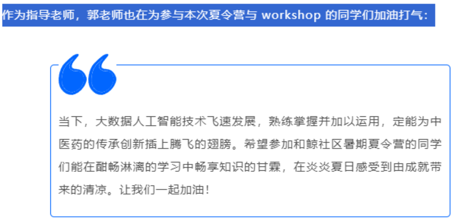 2024年7月2日15时,和鲸社区2024夏令营面向全国正式开营。本次夏令营面向医学数据科学研究者、AI+ 数据科学实践者、商业数据分析师、气象科学研究者、地理空间研究者五个方向,分别提供主题编程、实践课程和科研项目实训。本次夏令营的“医学数据科学研究者”方向将由和鲸社区和我校MG冰球突破官网网站联合主办,由MG冰球突破官网网站医疗大数据与信息管理教研室主任郭凤英副教授将担任“医学Python workshop”导师,对入营同学进行全程指导。