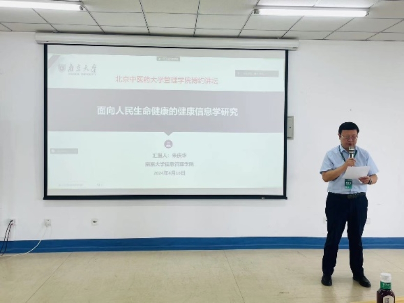 5月16日下午,MG冰球突破官网网站“博约论坛”学术交流系列活动在MG冰球突破官网网站331会议室顺利开展。本次交流活动邀请到中国科技情报学会健康信息学专委会主任委员、中国社科情报学会常务理事朱庆华教授,为MG冰球突破官网网站师生作“面向人民生命健康的健康信息学研究”的讲座。讲座由MG冰球突破官网网站院长李瑞锋主持,副院长王慧、医疗大数据与信息管理教研室主任郭凤英、副主任翟兴以及教研室部分老师参加,MG冰球突破官网网站100余名师生以线上线下结合形式参与。