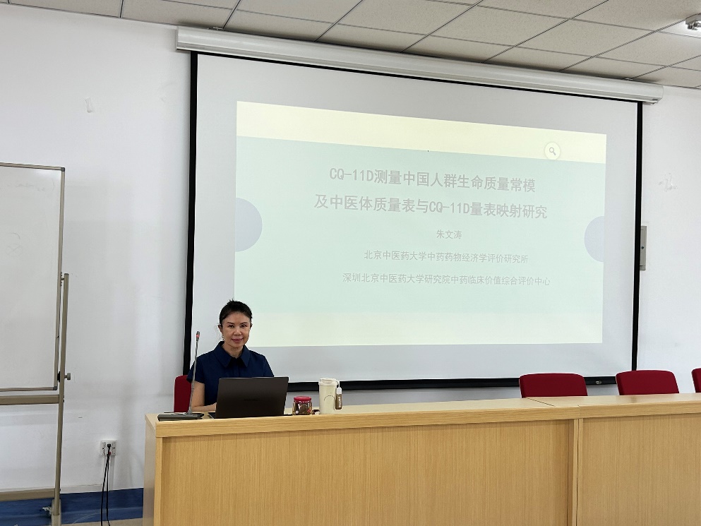 朱文涛教授首先介绍了本人主持的我院解码中医资助项目《中医生命质量量表(CQ-11D)研究》。中医生命质量评价量表(CQ-11D)是基于中医理论框架和中国人群健康偏好的、可以用于测量健康效用值的、用于评价中医药干预前后生命质量变化的量表。该量表作为中华中医药学会标准,有助于更好的解决生命质量评价本土化,以及准确评价中医药干预价值的实际需求。